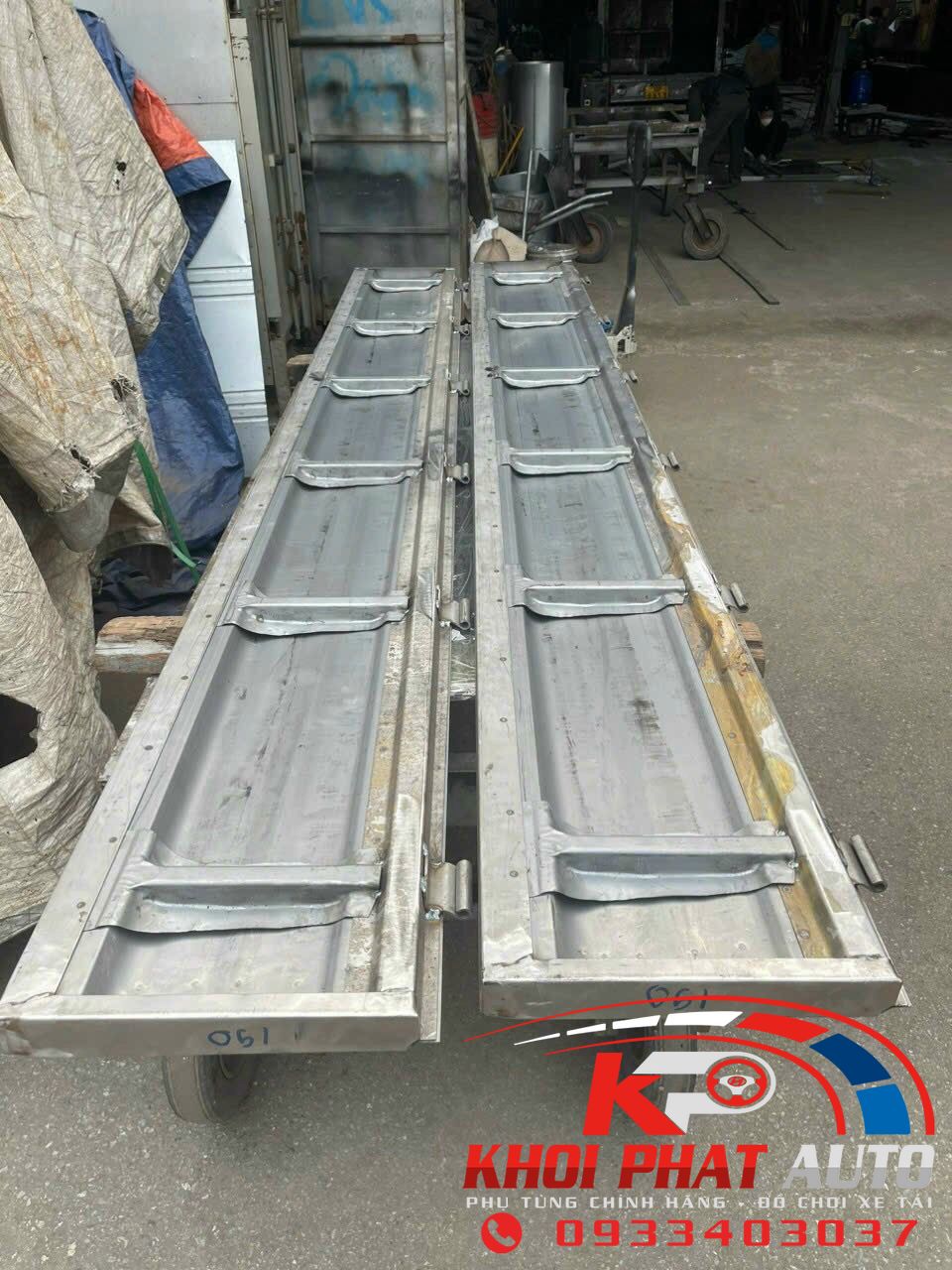 Bửng hong thùng xe Kia K200 K250 bửng thùng xe Kia K3000 K165 K2700 K140 bằng tôn thép bửng xe tải Kia bằng Inox theo mẫu zin của thùng gia công bửng hong bửng sau xe tải Kia