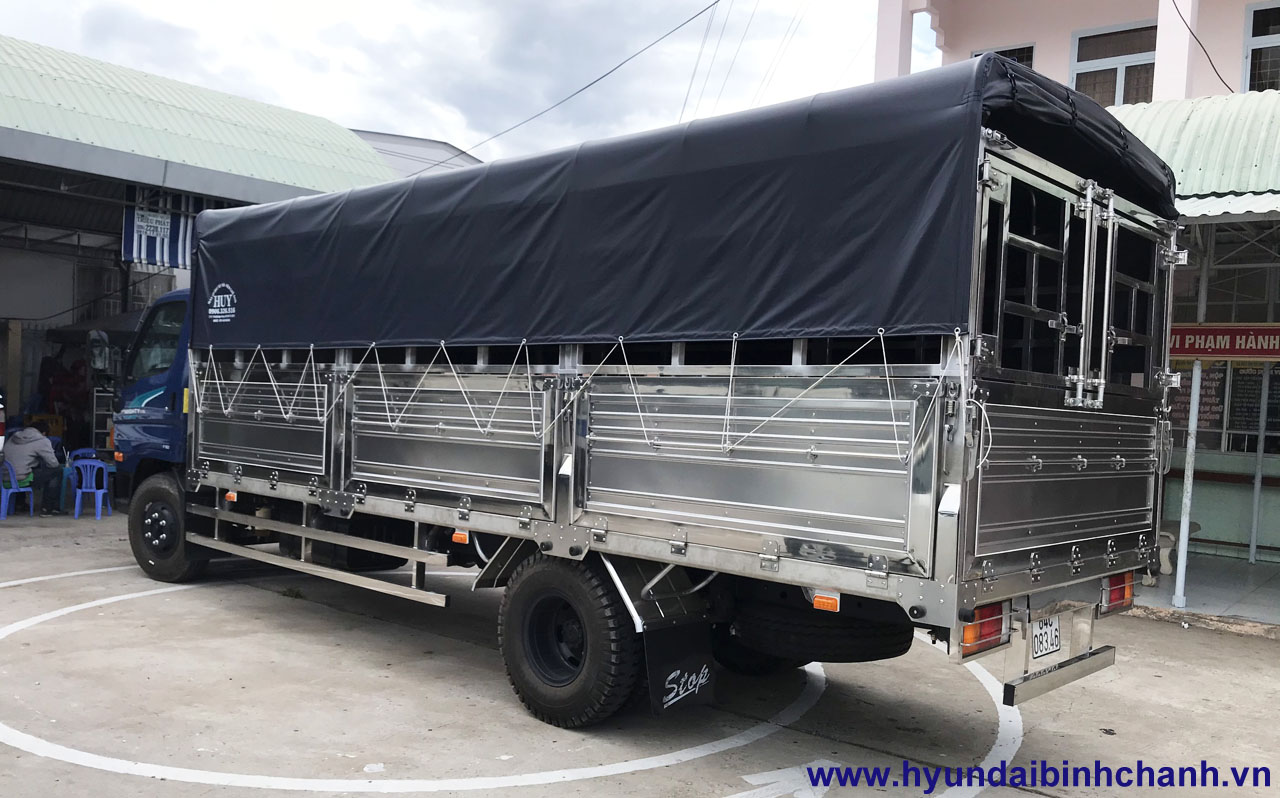 Chi tiết thùng mui bạt thiêu chuẩn Hyundai 110SL 7 tấn thùng Inox nhôm