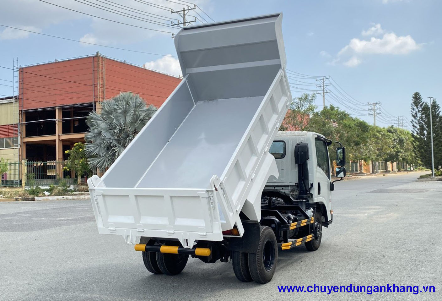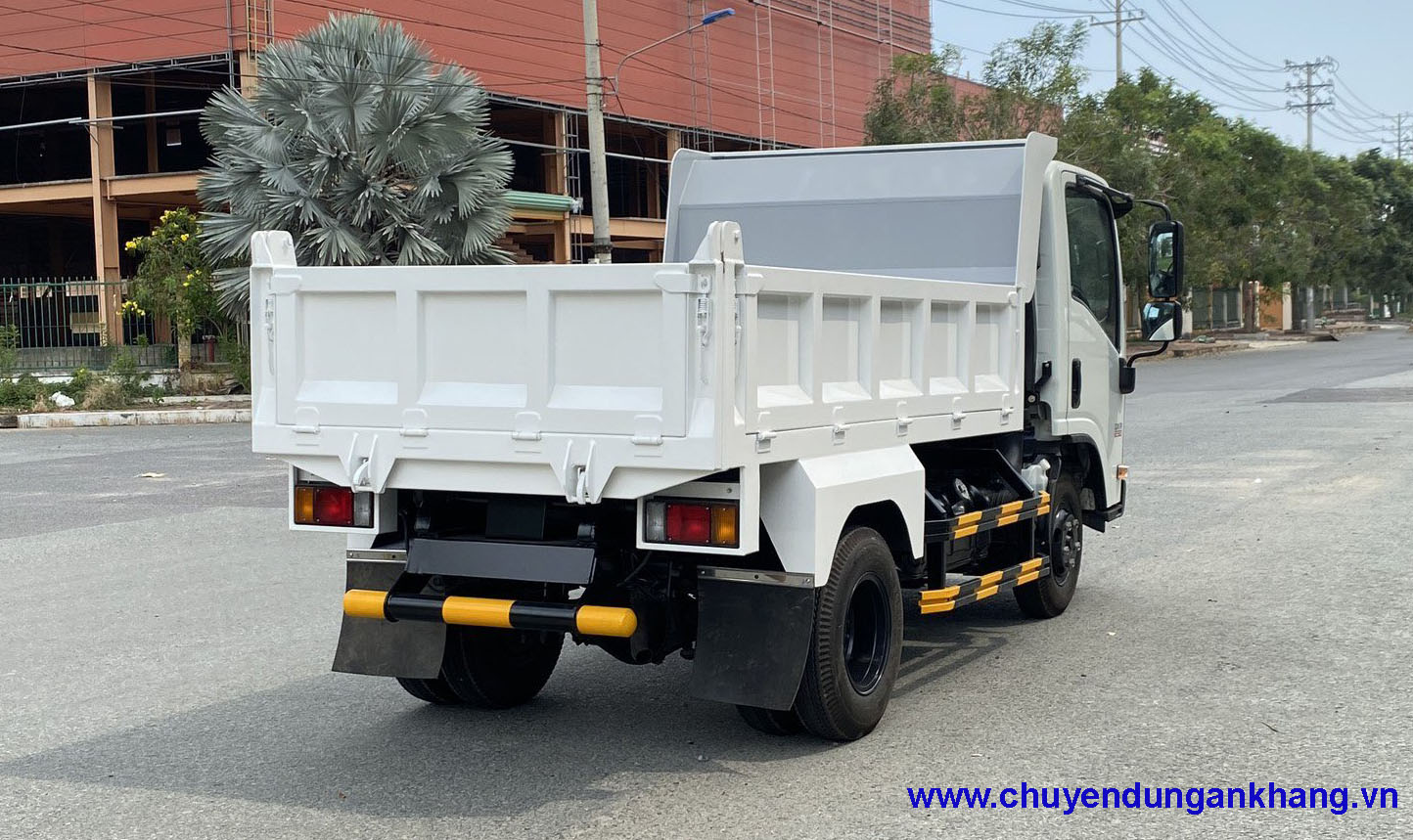 Thùng ben được công ty chuyên dùng An Khang thiết kế cân đối tạo nên chiếc xe tải thùng ben tinh tế hơn. Thùng được đóng bằng thép SS400 chắc chắn dày 3mm vách, các khung trụ bằng thép 5mm các thanh bản lề bằng thép 6mm