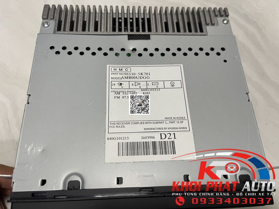 Radio Hyundai HD72 HD99 110S HD320 HD700 HD1000 chính hãng đài FM xe tải Hyundai 24V lắp cho các dòng xe 3.5 tấn 7 tấn đầu kéo HD1000 HD270. Mã phụ tùng: 96110-5K701
